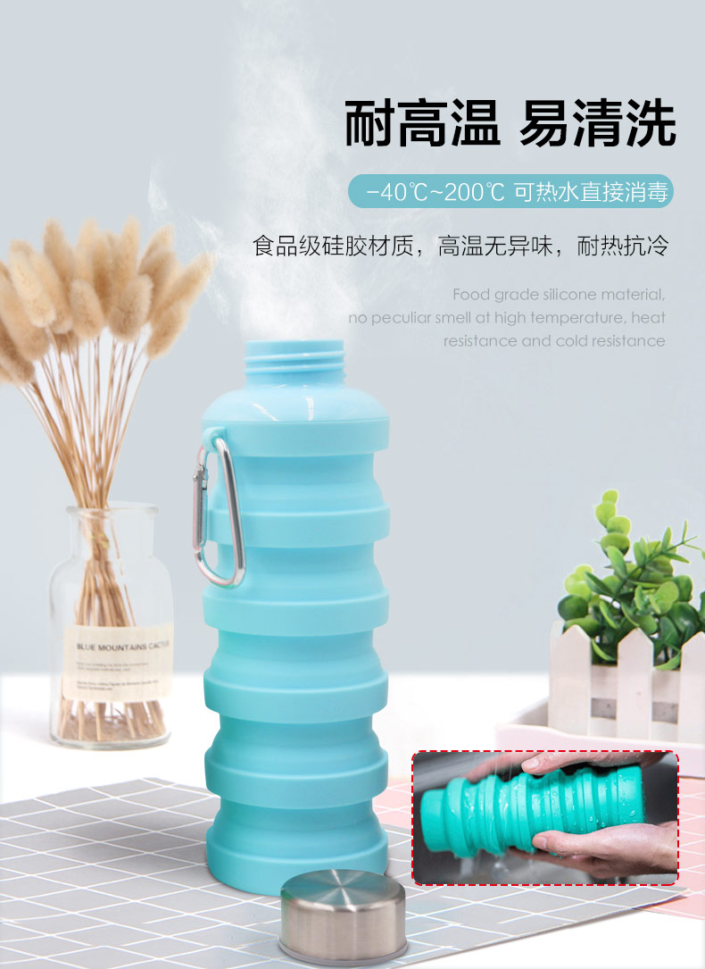 用途:食品級材質(zhì),不含BPA,可伸縮折疊,不占空間,抗摔 耐壓, 耐熱抗冷,多色可選,時尚健康