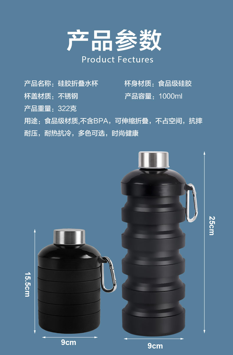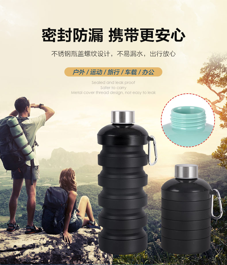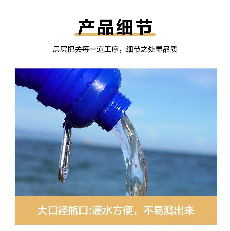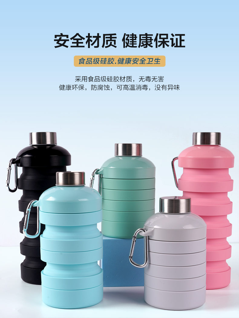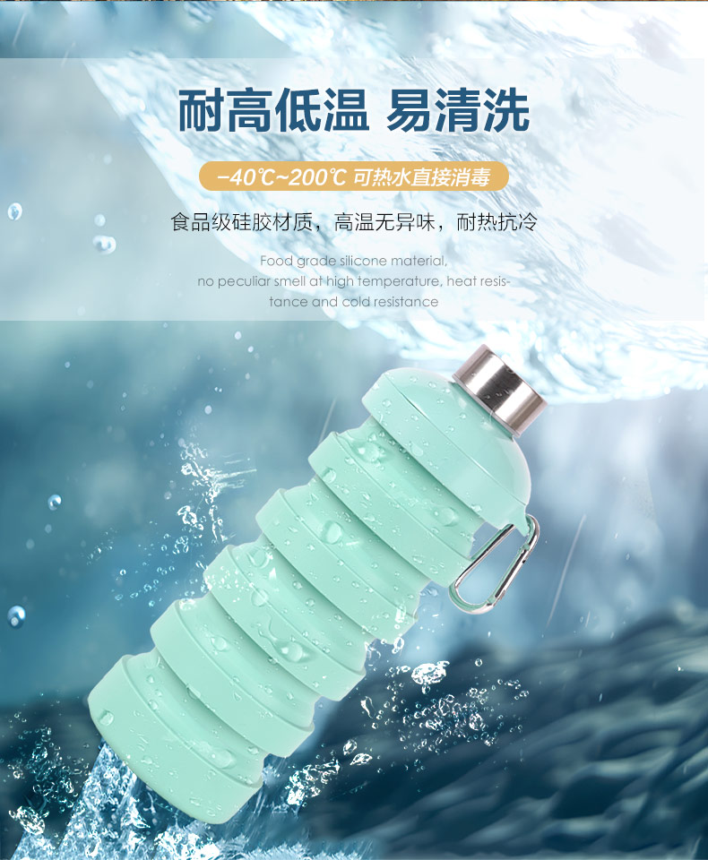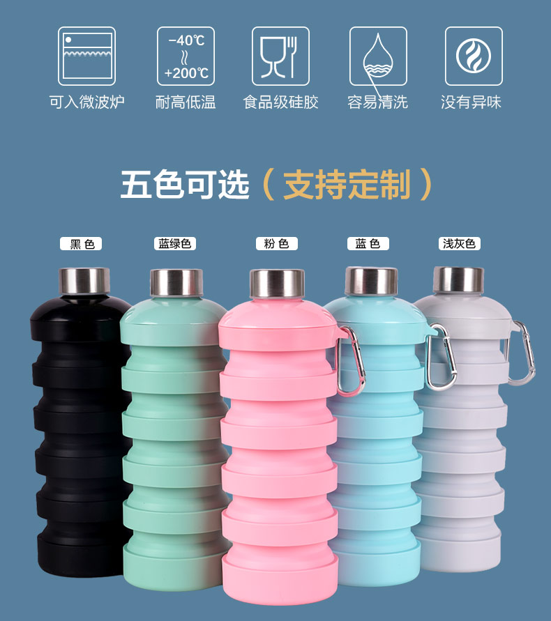 用途:食品級材質(zhì),不含BPA,可伸縮折疊,不占空間,抗摔耐壓,耐熱抗冷,多色可選,時尚健康